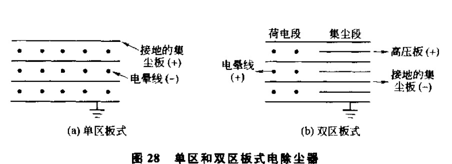 這種電除塵器具有前后兩個區域:前區安裝放電極,稱為電離區,粉塵首先進人此區荷電;后區安裝收塵極,稱為收塵區,荷電粉塵在此區域被捕集。雙區電除塵器的電壓等級較低,通常采用正電暈放電,多用于空氣調節系統的凈化。