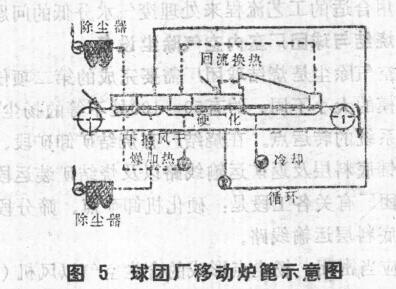 由于耗熱量是球團生產(chǎn)中的一項主要經(jīng)濟因素,所以運行過程一般以.回流換熱’原理為基礎(chǔ)。由下抽風段和預熱段(已經(jīng)過回流換熱過程)抽出的廢氣以及由上抽風段抽出的廢氣,都必須經(jīng)過除塵。